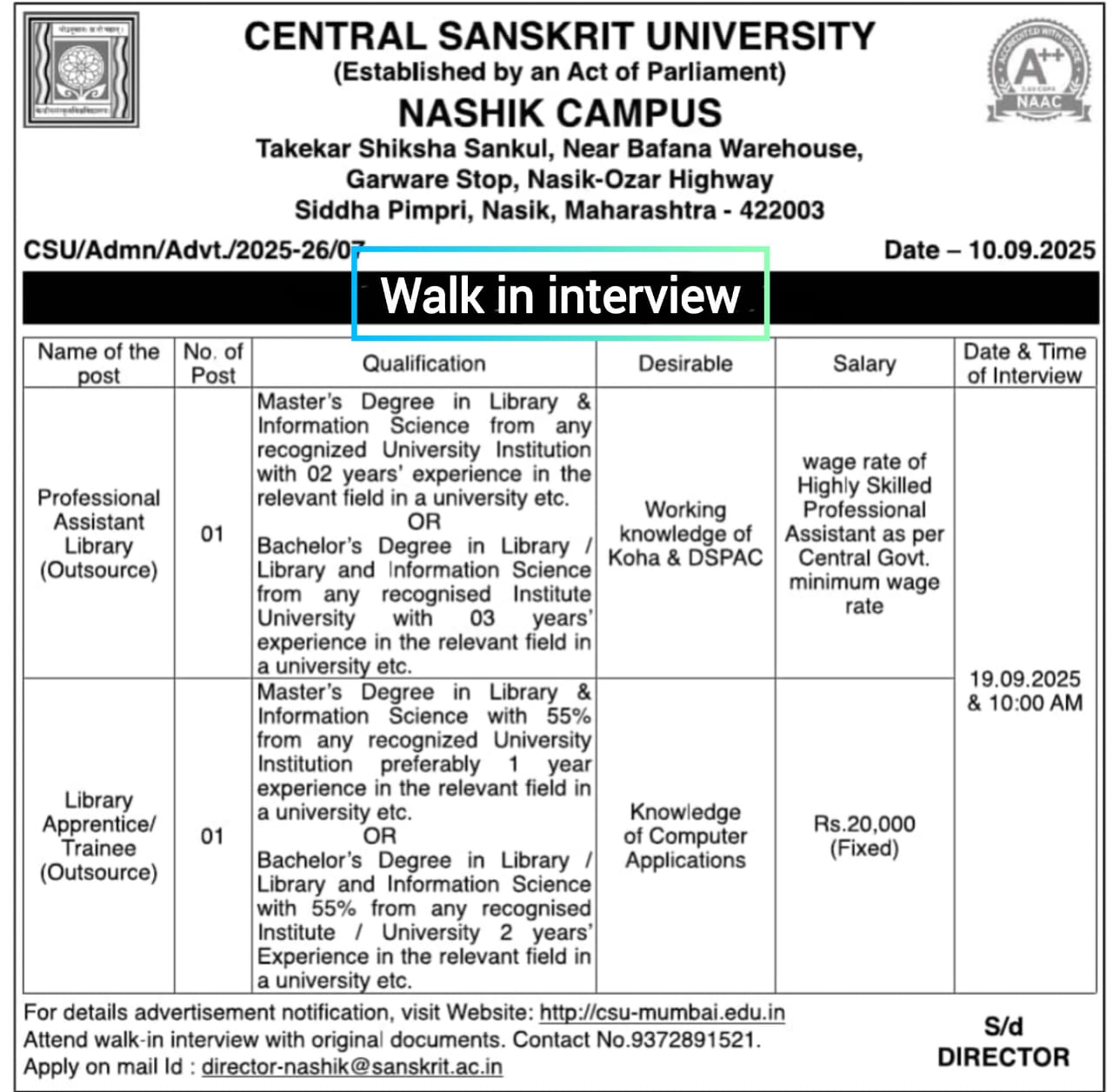 Walk-In Interview for the engagement of temporary post of Hindi and Marathi Teacher
